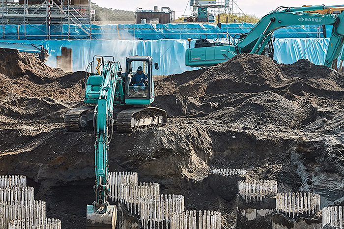 具體負(fù)責(zé)打下基礎(chǔ)樁以后的沙土挖掘。裝有“智能施工三維機(jī)械控制”系統(tǒng)的神鋼建機(jī)制造的ITC建設(shè)機(jī)械,